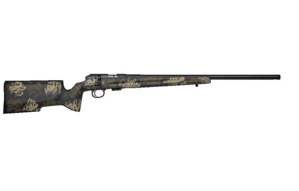 Based off the PRS1 stock, this special Manners carbon-fiber composite stock provides a rock-solid platform and is finished in a three color camouflage pattern with a base of carbon fiber peeking through the background. The stock itself has multiple layers of carbon fiber and fiberglass hand-laid in high-temperature epoxy resins, then placed in a vacuum and heat-cured to create the perfect resin-to-fabric ratio. Combined with a cold hammer forged Varmint barrel (several variants threaded 1/2×28), the Precision Trainer is a paper-puncher with surgical precision.