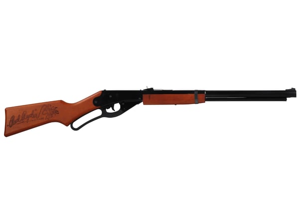 Hit your target with the Daisy Youth Air Rifle Red Ryder 1938. The dependable design and tradition of the Red Ryder make this piece America's favorite. It is safe for kids to use with adult supervision. With a solid wood stock and classic styling, this Daisy BB gun is ideal for beginners and hobbyists. It carries a rich tradition and a dependable design common with the brand. It is crafted with a stained solid wood stock with a lariat logo, a burnished forearm band and a smooth bore steel barrel. The lever-cocking spring air action propels the BBs at a maximum velocity of 350 feet per second. The Red Ryder gun has the ability to shoot up to 195 yards, which is sure to impress those with old childhood memories and a new generation of enthusiasts. This firearm has a 650-shot capacity that ensures a lengthy stay at the shooting range for you and your sharp shooter. This is an ideal way to teach your son or daughter hunting and gun safety skills.