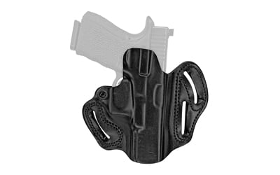 The Speed Scabbard® is designed to meet the needs of plainclothes professionals preferring a holster without a thumb break while still providing firearm retention. This is accomplished with precise molding and tension screw device on most models. Available in black unlined leather. Belt slots are 1 3/4" wide. Some models with two belt slots and without tension device
