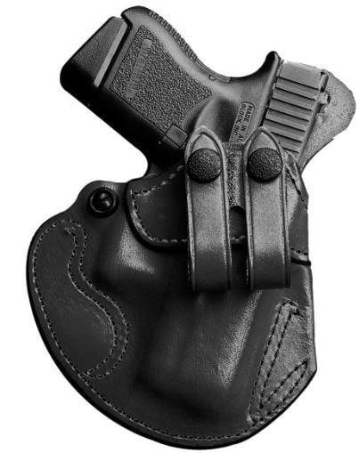 The DeSantis Cozy Partner Leather IWB Holster, Glock 43/Glock 43X, Left Hand, Plain, Black, 028BB8BZ0 Color: Black, Gun Make: Glock, Gun Model: Glock 43, Glock 43X, Barrel Length: 3.3 in, Holster Material: Leather, Unlined Leather, Hand: Left, Holster Type: Belt Holster, Holster Size: Full Size, Quantity: 1, Accessory Attachment System: Belt Loop, Finish: Plain, Belt Loop/Snap Width: 1.75 in, Condition: New, Fastener/Closure Type: Open Top, Attachment Type: Belt Loop/Slot, Country of Origin: USA, Holster Finish: Plain.