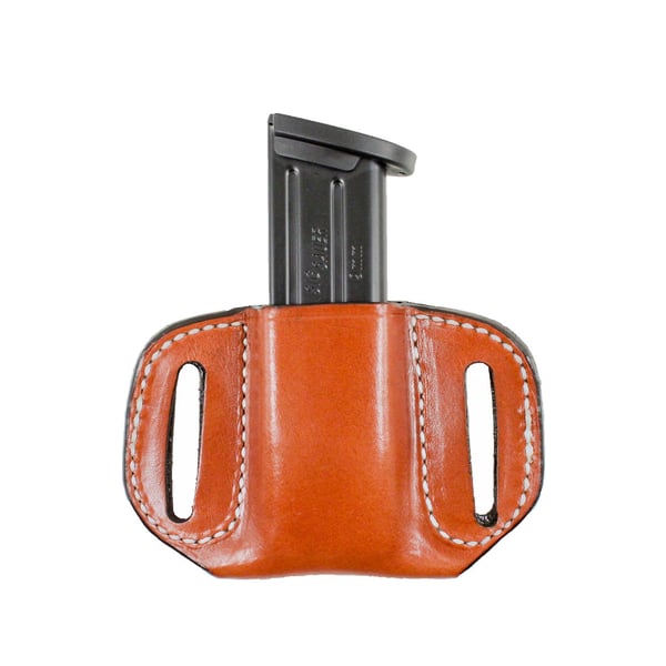 The Reliant is ambidextrous and keeps the magazine both high and tight. It is built from premium grade American Steer hide and accommodates belts up to 1 3/4" wide.