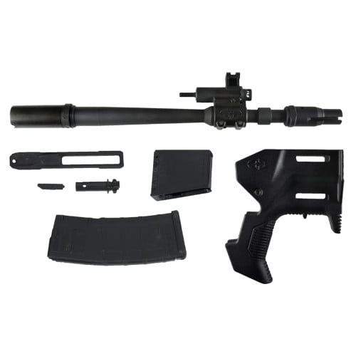 The Desert Tech MDRx 16" 5.56 NATO/.223 Rem Forward Ejection Conversion Kit utilizes the newly designed gas block for enhanced reliability and the new Ratchet compensator. The conversion kit includes the bolt, barrel assembly (including barrel extension), forward chute panel, and magazine insert (if applicable). Desert Tech MDRx Forward Ejection (FE) Conversion Kits are only compatible with MDRx FE rifles and chassis.