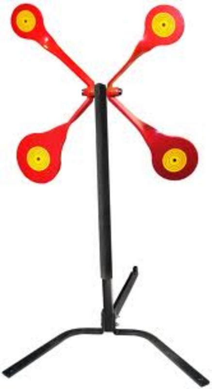 Do-All Outdoors Spin Cycle targets adds a little frenetic unpredictability to your personal shooting range. These windmill-style targets feature two independently rotating windmill arms, one on each side. When you hit a target, the arms spin around, forcing you to adjust your position for the next shot. In competitive dueling, you can choose to keep your targets moving or stop your opponents', leading to a dynamic duel every time. target acquisition, speed, and accuracy are all improved when shooting on moving targets like the Do-All Spin Cycle, and the difficulty ramps up even more when you add a friend into the mix. This set of Do-All Outdoors targets includes one 4" target and one 6" target on each side, and the targets themselves are sturdy and high visibility. Do All Outdoors has included a bullet deflection plate into the base for additional safety, and the three leg base is stable enough to take anything you throw at it. Do-All Outdoors Spin Cycle Windmill targets come in three varieties: .22 caliber, .38 to .44 caliber, and 9mm, .30, and .06 caliber. Choose the appropriate Spin Cycle target set to get shooting (and spinning) today!