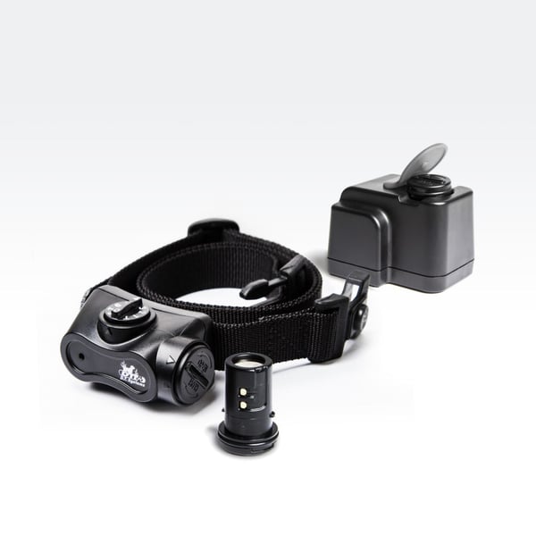 - The middle (black) post on the collar senses the vibration from the dog's vocal cords.