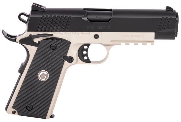 This model of the Girsan MC1911 Commander version features a checkered grip, ambidextrous safety, and 3.5 to 4 lbs trigger. It also features Novak style rear sight, extended beaver tail, under barrel accessory rail, steel machines frame and slide, and deep slide serrations. It has a 9+1 capacity, and a 4.4" barrel.