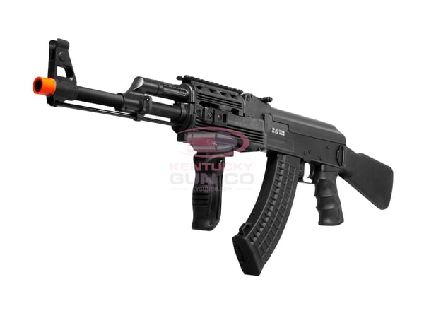 The Echo 1 Red Star AK47 RIS is a high-powered electric assault rifle built for war. This heavy duty beast packs a serious punch on the battlefield with its uncompromising semi/fully automatic shooting and unbelievable accuracy. The gun features a full metal body, a 600 Rd high-capacity magazine, and a shot velocity of 380-390 fps (using .20g BBs). A tactical rail interface system also allows easy mounting and installation of optional scopes and flashlights. Airsoft enthusiasts looking for a realistic, heavy duty rifle that will dominate battlefield competition should check out this awesome gun. Own your enemies and order today! The Echo 1 Red Star AK47 RIS comes with an 8.4v Nicad 1500 mah battery, fold able grip, 2 waffle styled magazines, and a 250 mah battery charger. Battery Charge Time: 6 hours Features: Full Metal Body New generation full metal gear box Metal bolt carrier, metal trigger, metal receiver cover Adjustable metal front/rear sight Adjustable Hop-Up Fixed Stock