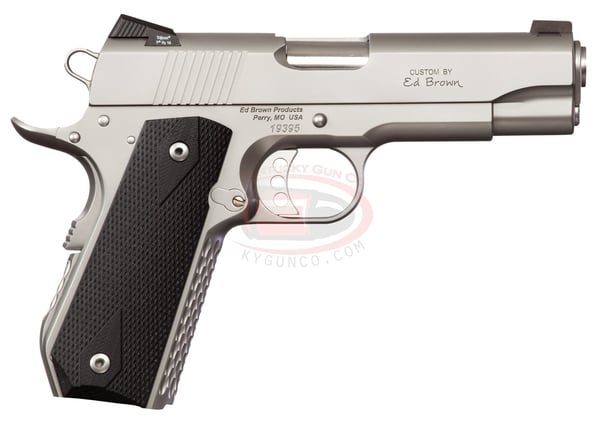 The Alpha Carry has a 4.25" Commander model slide with a single stack Commander Bobtail frame. The John Browning traditional design is innovatively modified for concealed carry, without significantly detracting from reliability or accuracy. This stainless steel pistol has a Chainlink I treatment on forestrap and mainspring housing for the ultimate in durability, secure grip, and extreme use. Ed Brown firearms are engineered, machined, and handcrafted for performance under the direct supervision of the Brown family. Ed Brown firearms are engineered, machined, and handcrafted for performance under the direct supervision of the Brown family. They strive to make the very best high grade, high performance firearms, at a reasonable price and delivery, using their own innovative designs, superior components, and old fashion hand craftsmanship all backed by a lifetime written warranty and excellent customer service. Ed Brown's firearms manufacturing philosophy rests on three pillars, upon which they have built their 40 years of success. Ed Brown is engineered for performance, precision machined in America, and hand-crafted to perfection.