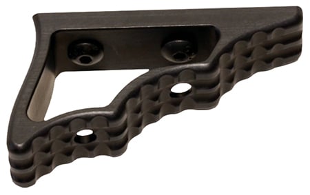 The KeyMod Enhanced Angle Grip is constructed of black anodized 6061-T6 aluminum, is able to function as a handstop, and contains an enhanced thumb-over hold.