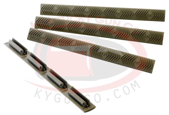 This item comes four per package. It features a low profile with aggressive texture, and a positive non-slip surface. The M-LOK WedgeLok slot covers four MLOK slots.