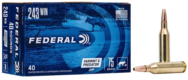 High-volume varmint hunters can get deadly long-range performance at an affordable price with American Eagle Varmint rounds. The jacketed hollow-point bullet is accurate, and reliable and provides terminal performance that instantly puts down tough varmints.