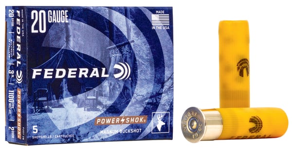 FEDERAL AMMO 20Ga 3" Mag. 18 Pellets-2 Buck 5rd Power-Shok