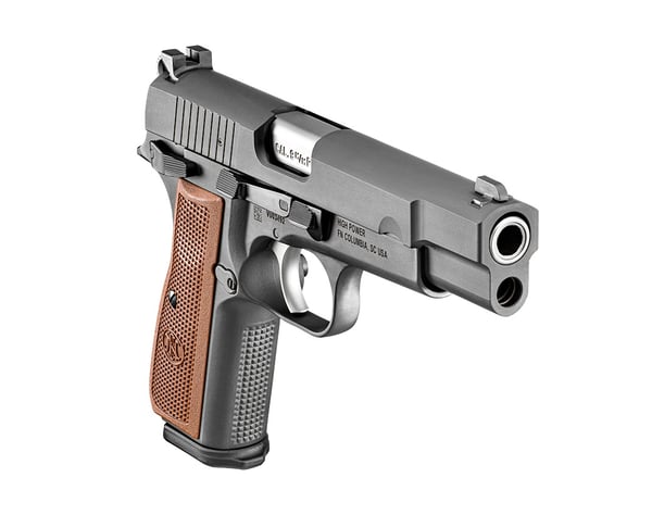 At 40-oz., the robust design keeps the signature rake of the dust cover and long arm slide release, adding ambi-controls for instinctive operation. An extended beavertail and raised hammer fit perfectly in hand. The FN High Power takes down instantly for maintenance, deletes the magazine disconnect, and ensures that most modern factory loads feed smoothly over the polished ramp of the cold hammer forged barrel.