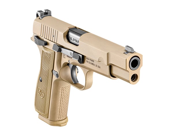At 40-oz., the robust design keeps the signature rake of the dust cover and long arm slide release, adding ambi-controls for instinctive operation. An extended beavertail and raised hammer fit perfectly in hand. The FN High Power takes down instantly for maintenance, deletes the magazine disconnect, and ensures that most modern factory loads feed smoothly over the polished ramp of the cold hammer forged barrel.