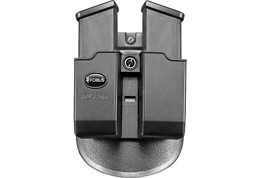 This product has the following fits: .45 Double-Stack Double Magazine Pouch (fits Glock) - Allows the user to carry two additional magazines and provides easy and fast access for quick reloads. Adjustment screw with low profile design. - Lightweight compact design - Low profile design for concealability - Rubberized paddle insert for extra stability and comfort - Steel reinforced rivet attachment - Adjustable tension screw available on some models - Offered in paddle belt and roto styles