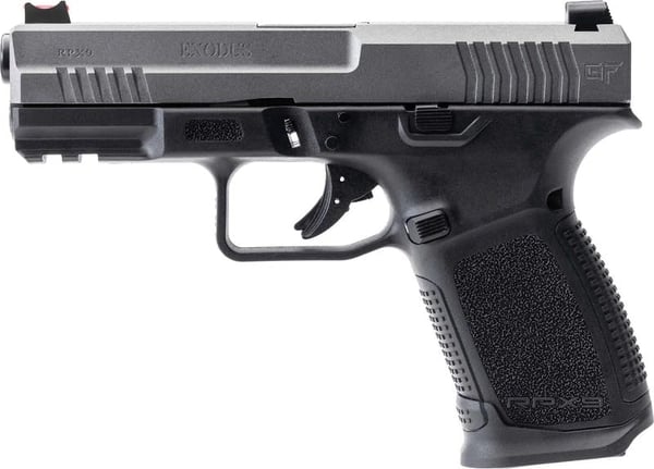 The RPX9 Exodus offers a robust combination of modern styling and proven function. Its fiber optic front and rear sights provide rapid target acquisition, while the flared magazine well ensures smooth reloads under pressure. This model is compatible with Glock Gen 3 & 4 G19 parts and magazines, expanding aftermarket support for customization.