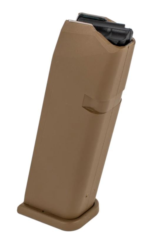 The Glock 19X Coyote Tan 17 round magazine is designed for the Glock 19X pistol however is it compatible with all Glock 9mm handguns. The Coyote Tan color gives you a perfect match for any of your matching 9mm Glock handguns for a smooth aesthetic appeal with the rugged durability and metal construction that Glock is known for.