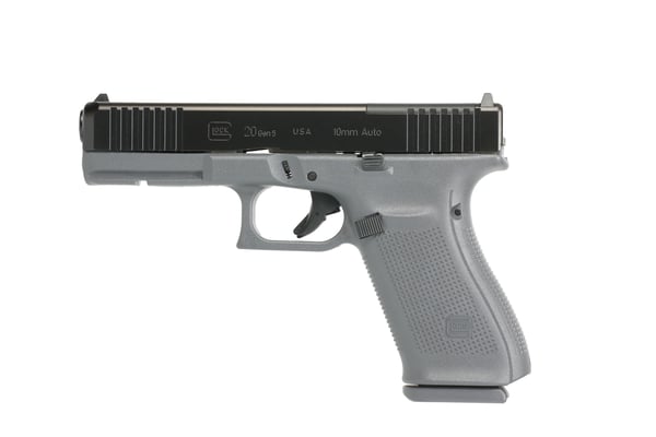 The G20 Gen5 MOS delivers formidable force downrange with high accuracy over long distance. The use of Glock hi-tech polymer considerably reduces felt recoil even in this heavy caliber. Gen5 features flared mag-well has a larger funnel; Glock Marksman Barrel (GMB) more aggressive polygonal rifling with a target-style crown and tighter chamber specs; ambidextrous slide stop levers offer increased ergonomics for left-hand shooters and shooting with the support hand; removal of finger grooves; Safe Action System, safeties disengage sequentially as the trigger is pulled and automatically re-engage when the trigger is released; enlarged floor plate makes it easier to pull the magazine free of the pistol and customizable frame size with backstraps in two sizes with beavertail. The multiple backstrap frame allows the users to change the circumference of the grip to fit their individual hand size.