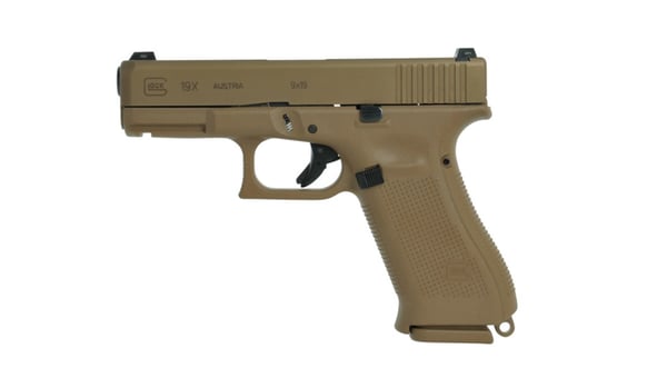 GLOCK's first ever Crossover pistol, the GLOCK 19X, combines the best features of two of its most popular and most trusted field-tested platforms. The full-size GLOCK 17 frame and the compact GLOCK 19 slide have joined forces to produce the ideal pistol for all conditions and all situations. The 19X comes in the coyote color with the first-ever factory colored slide, finished with an improved nPVD slide coating to prevent corrosion. Additional features include the GLOCK Marksman Barrel (GMB), no finger grooves, ambidextrous slide stop levers and lanyard loop. Included with the pistol is a coyote-colored pistol case.