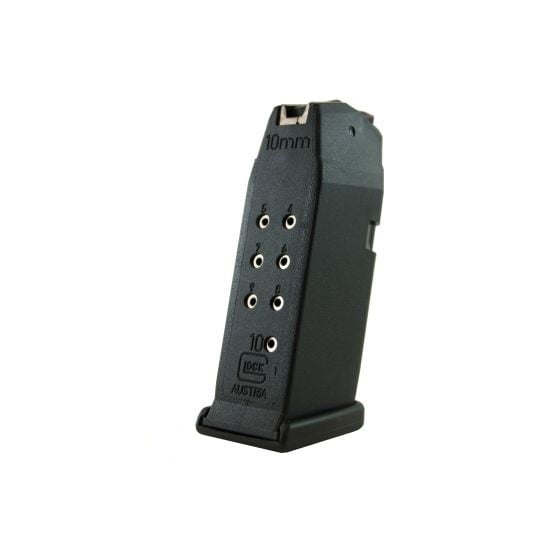 Like no other pistol, Glock pistols permit almost unrestricted compatibility of the magazines within a caliber. Standard magazines, for instance, can also be used for backup weapons. Compact and subcompact Glock pistol model magazines can be loaded with a convincing number of rounds. The innovative polymer frame of the Glock pistol does not require grip shells. As a result, it has considerably more space for the magazine body and enables double-row staggered cartridge configuration. For this reason, Glock pistols are superior in firepower to conventional pistol models of the same size. Glock magazines have a stiff metal tube encased in the proven Glock high tech polymer. This resists deformation - even when dropped from great height or exposed to extreme environment conditions.