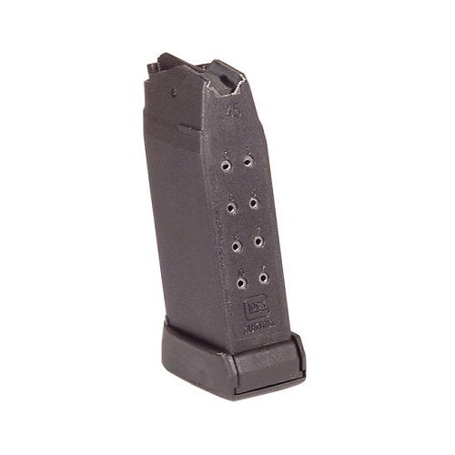 Like no other pistol, Glock pistols permit almost unrestricted compatibility of the magazines within a caliber. Standard magazines, for instance, can also be used for backup weapons. Compact and subcompact Glock pistol model magazines can be loaded with a convincing number of rounds - i.e. Glock 26: up to 33 rounds. The innovative polymer frame of the Glock pistol does not require grip shells. As a result, it has considerably more space for the magazine body and enables double-row staggered cartridge configuration. For this reason, Glock pistols are superior in firepower to conventional pistol models of the same size. Glock magazines have a stiff metal tube encased in the proven Glock high tech polymer. This resists deformation - even when dropped from great height or exposed to extreme environment conditions.