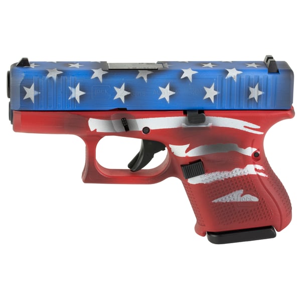 With the release of the GLOCK 27 Gen5 in 40 S&W the Gen5 family gets a new member. The innovative Gen5 design changes are added to this small, light, accurate and powerful pistol that so many U.S. law enforcement agencies have chosen as their official backup weapon. Adjustable like the Gen4 model the subcompact frame of the G27 Gen5 features the modular backstrap and beavertail system (MBS) and comes with a reversible magazine catch to accommodate left and right-handed operators. This model has a Skydas Exclusive Red White and Blue Battle Worn Flag Cerakote. Shop with KYGUNCO for the best selection, competitive pricing, and exceptional customer service. Experience the difference that comes with buying from a trusted outdoor retailer with over 20 years of experience in the industry.