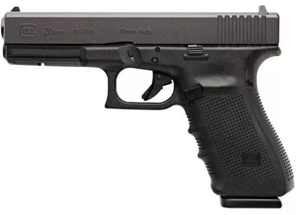 The Glock 20 Gen4, in 10mm, provides nothing short of massive firepower. The use of Glock hi-tech polymer considerably reduces felt recoil. With muzzle energy of 550 ft/lbs and a magazine capacity of 15 rounds, this 10mm is your reliable companion on every hunt. The Gen4 edition now incorporates a wider selection of grip dimensions to make customizing your grip even more precise