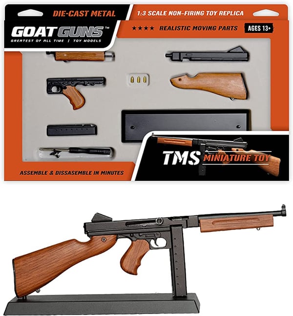 Goat Guns is a brand that creates unique and highly detailed miniature replica firearms. These mini guns are designed to look and feel like the real thing, with intricate details and realistic features that make them a must-have for collectors and enthusiasts alike. Each miniature gun is carefully crafted using high-quality materials and precision engineering, resulting in a product that is both durable and impressive. Whether you're a firearm enthusiast or simply appreciate the artistry that goes into creating these miniature masterpieces, Goat Guns is a brand that is sure to impress. With a wide range of models to choose from, including classic rifles, modern handguns, and even military weapons, Goat Guns has something for everyone. So why settle for a boring desk ornament when you can own a miniature work of art from Goat Guns?
