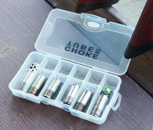 Finally an adjustable choke tube case that fits the standard choke tubes that come with your shotgun as well as ported and extended choke tubes. 6 adjustable compartments that keep the tubes from sliding around.