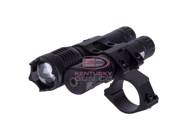 Hawke Sport Optics flashlight and red laser 5mW eye-safe laser with 10mm dot at 10 meters 150-lumen LED flashlight (25-yd effective range) Windage and elevation adjustments (laser) Scope ring fits 30mm scope tubes or 1" tubes (with adapter) Use on scopes with a max 50mm objective lens Remote and integral switches Includes CR123A batteries & hex tool This is quite a versatile setup for hunters. Use the flashlight to shine the light of day in dark corners or on targets that are trying to hide, while the laser will help you pinpoint where your pellet will land. Mount this on any air rifle with a scope that has an objective of 50mm or less.