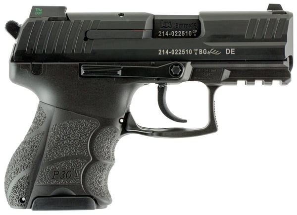 The subcompact model of the renowned P30 handgun, P30SK (SubKompact) series has all of the sought-after characteristics of the larger frame P30 and P30L pistols, but in a more concealable design. The completely adjustable P30 grip feature - consisting of interchangeable backstraps and lateral grip panels - is replicated in the ultra-compact grip frame of the P30SK. This allows the pistol to be easily modified to fit to any individual user. An abbreviated Picatinny rail molded into the front of the frame enables weapon lights, lasers, or other accessories to be easily mounted. Like all P30 pistols, the P30SK features an automatic hammer safety and firing pin safety. Ambidextrous controls include dual slide and magazine release levers. Despite the small size, P30SK subcompacts have excellent weight and balance making them naturally pointable, easy to control, and accurate to shoot. Like all P30 pistols, the P30SK features an automatic hammer safety and firing pin safety. Variant 3 uses a conventional double action/single action (DA/SA) trigger mode and has a frame-mounted rear decocking button. This V3 model also has an ambidextrous safety, is equipped with nights sights and includes three 10-round magazines.