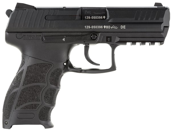 HK's P30 is a modern police and security pistol that combines function and safety. Ergonomic features include a special grip frame with interchangeable backstrap inserts and lateral plates, allowing the pistol to be individually adapted to any user. The frame also has a Picatinny rail molded into the front. Its slide is one-piece machined from nitro-carburized steel with a corrosion resistant blued finish. The P30 utilizes ambidextrous dual slide and magazine release levers, and extractor which doubles as a loaded chamber indicator, and polygonal bore profile. This V3 model has a serrated decocking button, spurred hammer, polymer recoil absorber "stop" bushing, and 3-dot sights. Included are two backstraps, lateral grip plates, and 10-round magazines.