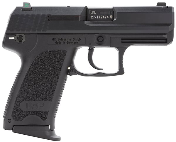 The HK USP (Universal Self-loading Pistol) is an accurate and ultra-reliable handgun. It utilizes a fiber-reinforced polymer frame stiffened by stainless steel inserts at areas subject to stress and friction. The control lever, a combination safety and decocking lever, is frame mounted and quickly accessible, unlike the slide-mounted safeties. The modular design of the USP's internal components allows the control lever function to be switched from the left to the right side of the pistol for left-handed shooters. The USP Compact is smaller and lighter than large frame USPs. The reduction in trigger reach and grip circumference increases concealability and enhances shooting ergonomics. It utilizes a narrow, full-hand grip frame with a choice of interchangeable extended or flush-fitting magazine floorplates. The USP Compact features a polygonal bore barrle, one-piece steel slide with contoured, extended release, bobbed hammer, universal mounting grooves, and ambidextrous magazine release lever. This V1 model has a black frame with blued slide, captive recoil spring assembly with polymer absorber bushing, night sights, and comes with three 13-round magazines. Shop with KYGUNCO for the best selection, competitive pricing, and exceptional customer service. Experience the difference that comes with buying from a trusted outdoor retailer with over 20 years of experience in the industry.