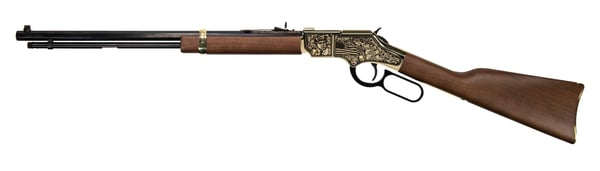 The rest of the rifle follows suit with the award-winning Golden Boy, including the 20" blued steel octagon barrel, fully adjustable sights, brass buttplate, brasslite barrel band and the smoothest action you will ever feel right out of the box. This is the finest Presidential Golden Boy rifle that money can buy.