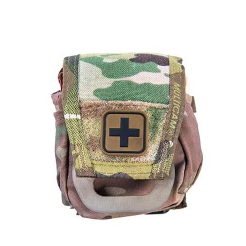 The HSGI ReVive™ is a compact pouch designed to carry immediately accessible, essential medical gear. The pouch is built around treating a gunshot wound and is intended to fit a chest seal, 4 trauma dressing, combat gauze, trauma shears and two pairs of nitrile gloves, but will also fit other similar items. The patent-pending RipCord insert enables the contents to be quickly and easily deployed within a self-contained harness, preventing users from fumbling for the needed item or dumping the contents of the pouch.