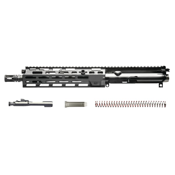 The MR556 upper receiver kit has been updated to include all the new A4 features, including new barrel profile, adjustable gas block, handguard and more. This kit includes a complete upper receiver/barrel assembly, allowing Mil-Spec 5.56mm AR-style rifles to be retrofitted to HK's piston and pusher rod system. This system utilizes a piston and a pusher rod in place of the gas tube normally found in AR15/M16/M4-style rifles. This closed system virtually eliminates the malfunctions that are common in direct-impingement gas systems, since hot carbon fouling and waste gasses are not propelled into the receiver area to operate the action. This is the same key feature critical to the success of the HK416 used by elite military and law enforcement customers. The MR556 A4 is assembled in the USA using US and German-made components and uses many of the same parts and assemblies originally developed for the HK416. It functions reliably and shoots accurately with a wide variety of quality 5.56mm or .223 ammunition. Due to the shortened length of the HK buffer and action spring, these parts do not work in fixed-stock AR/M16- type rifles. Installation of Mil-Spec hammers on non-HK lower receivers is required for reliable function.
