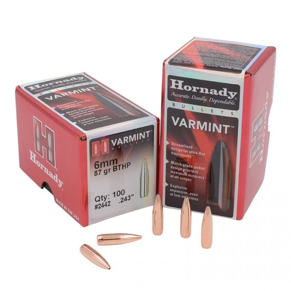 The Hornady line of traditional Varmint bullets features a streamlined design for flat trajectory. Its lead core and match-grade copper jacket represent the original standard created by Joyce Hornady for classic varmint hunting. Primarily comprised of spire point profiles and flat base designs, the bullets perform extremely well even at low velocities and deliver excellent performance in many classic varmint rifles.