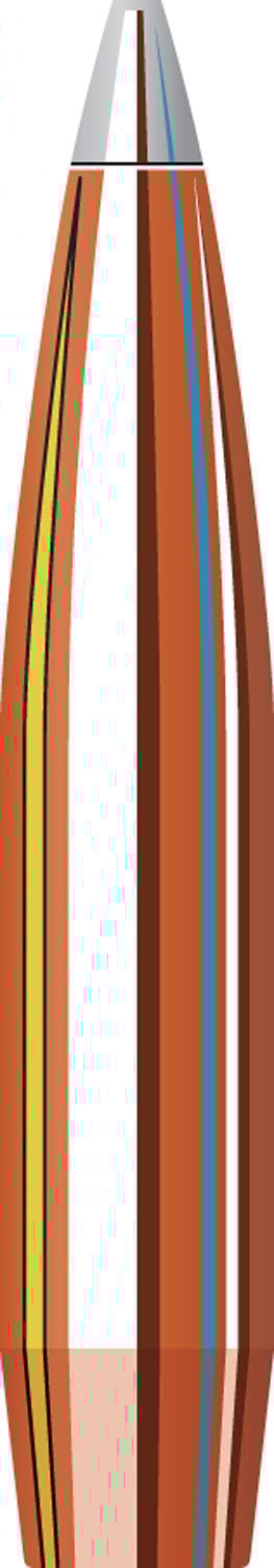 Years of research and testing by the Hornady Ballistic Development Group, combined with advanced manufacturing processes and quality control measures have led to the creation of the ultimate low drag, high-performance match bullet. Aluminum tip is precision machined and longer than polymer tips which moves the center of gravity and enhances in flight stability.