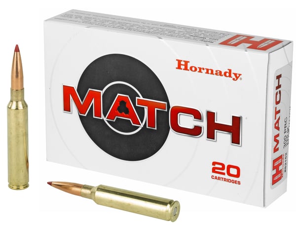 With extremely tight tolerances and strict quality control, all Hornady® Match™ ammunition features superior lot-to-lot consistency. From the bullet seating to the optimal charges and velocities, Hornady® Match™ ammunition is designed to live up to company founder, J.W. Hornady's original goal: "Ten bullets through one hole."