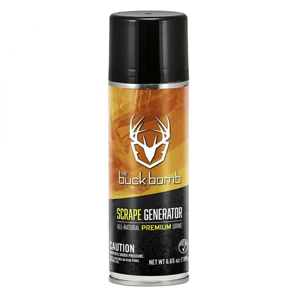 Scrape Generator 6.65 oz. Buck Urine Scent by Buck Bomb®. The Buck Bomb Scrape Generator Bomb contains 6.65 ounces of pure, fresh urine from estrus does and rutting bucks. For best results, use during the pre-rut through the peak of the breeding period. Use Buck Bomb Scrape Generator while in your stand or blind, or when stalking deer to create a barrier of cover scent between you and the animal. The atomized scent is equally effective when used on scent trails, in mock scrapes, or when applied to a decoy to ramp up the enticement level. The convenience of Buck Bomb Scrape Generator simply means spray-and-go when you're applying deer lure scent.