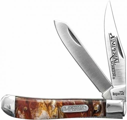 Imperial Trapper Folding Pocket Knife, 3Cr13MoV Stainless Steel Clip Point Blade and Spay Blade with Nail Pulls, Amber POM Handles with Stainless Steel Bolsters, Brass Pins, and Heat Treated Back Springs
