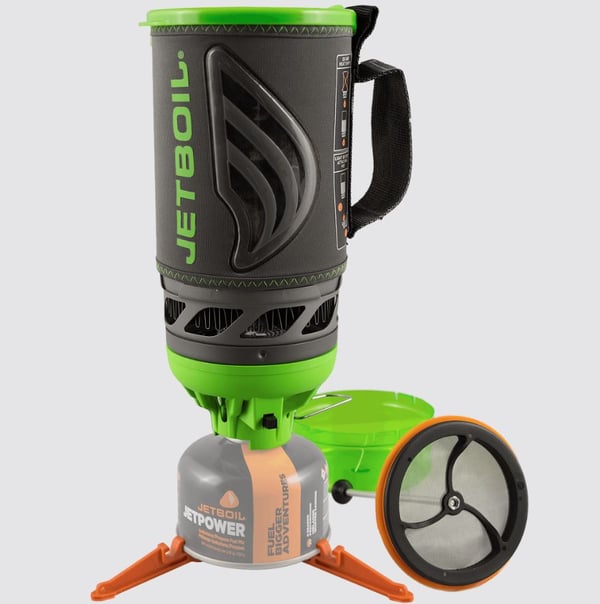 Blistering boil times come standard on the Flash Java Kit personal cooking system, which includes accessories for making a fresh cup of coffee on the trail. Optimized for efficiency, the Flash boils water in a lightning-quick 100 seconds, making it the fastest Jetboil ever. Jetboil's 1-liter FluxRing cooking cup with insulating cozy makes boiling water—and keeping it warm—a breeze. The kit's ultra-stowable Silicone Coffee Press stores perfectly inside the cooking vessel, so you can make French press coffee without hauling extra gear. Start heating instantly with the convenient, reliable, pushbutton igniter, and verify that the water's ready with the thermochromatic color-change heat indicator. Bottom cup doubles as a measuring cup and a bowl and is easy to pack and carry at only 13.1 ounces. Check out our selection of Hikers Brew Coffee for the perfect Java kit coffee companion.