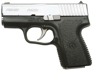 This Micro compact is the smallest and lightest pistol available in a serious, defensive cartridge. They are ideal for concealed carry, and especially nice for carry in a pants pocket. Kahr's PM40 has internal safeties, but no external one. Polymer frame, with matte stainless steel slide.