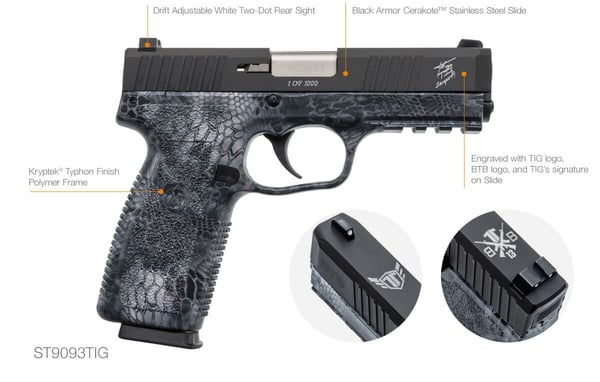 The 9mm sub-compact pistol with 4" barrel will feature the Kryptek Typhon print on the polymer frame with accessory rail, a blackened stainless steel slide, front slide serrations, and white three-dot sights. It ships with two eight-round magazines. This is a Special Edition pistol and only 1,000 will be made. Engravings on each pistol will include its number in the series, the TIG logo, TIG's signature and the Beyond the Battlefield logo. Part of the proceeds from the sale of each firearm will be donated to the Beyond the Battlefield (BTB) Foundation by Kahr Firearms Group, the parent company of Kahr Arms. Beyond the Battlefield is a non-profit 501(c)(3) organization that John "TIG" Tiegen and his wife, Margaret, founded in 2017. Its mission is to provide support for wounded veterans as they face the many challenges encountered during rehabilitation, the healing process and reintegration into everyday life.
