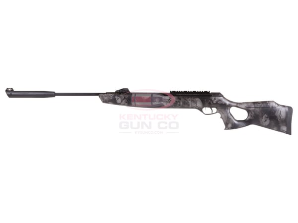 Spring piston, Breakbarrel 2-stage trigger Adjustable cheek piece 11mm Dovetail and Weaver Rails Muzzle brake suppressor for extra-quiet shooting Synthetic skull, thumbhole stock Textured pistol grip and forearm Rubber buttpad Fiber-optic front and rear sights