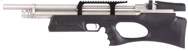Based on the full-size Puncher PCP, the Puncher Breaker is a bullpup version of an already impressive gun platform. Don't let its compact size fool you! The Puncher Breaker Marine maintains the power and accuracy of the Puncher PCP rifles while providing better maneuverability and reducing weight. This variant features a durable, synthetic stock with a built in bipod adapter which accepts the included 2.5” Weaver rail. The 7.5'' Weaver rail let you choose your scope layout. The silver "Marine" finished action boldly stands out against the jet black stock. Shoot to your preference with an adjustable power system so you can get more shots, or shoot harder, with ease. The large 280cc cylinder and a 200 BAR (2,900 psi) fill pressure, takes its shots to the limit! Keep snapping rounds into the breach with a nickel sidelever. A half-shrouded barrel significantly reduces the sound of the shots and is excellent for backyard target practice and pest removal. Each gun comes with 2 rotating magazines (all calibers) and a single shot slide in the .177 and .22 only. The stock features a flip-open compartment to store the extra magazine in the forearm.