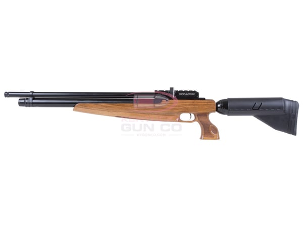 Precharged pneumatic Sidelever action .177 cal=14 rds, .22 cal=12 rds, .25 cal=10 rds 2-stage adjustable trigger Adjustable buttplate (vertically) 755cc cylinder size Rifled barrel High-quality Turkish walnut stock 2 Magazines Manual safetyIncludes: Hard Case, 2 magazines, o-rings, fill probe, 2.5" Picatinny accessory rail, and foregrip bipod
