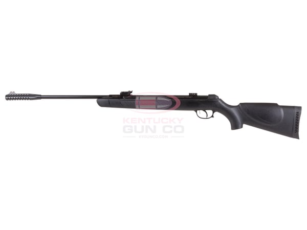 Spring-piston Breakbarrel Synthetic skull stock Truglo fiber optic front and rear sight Rear sight adjustable for windage and elevation Muzzle brake functions as cocking assist Rifled barrel 11mm dovetail scope rail Two stage trigger Built in scope stop For illustration purposes only, this image may not be an exact representation of the product.