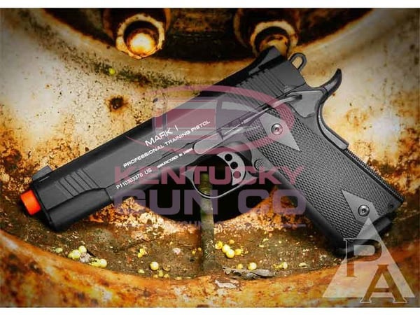 Take aim and fire with the KWA M1911 MKI PTP Blowback Pistol . This awesome green gas powered gun is exceptionally realistic in weight and feel, and produces an excellent blowback kick when fired. The gun features a full metal body and slide, a 21 Rd magazine, and a shot velocity of 320-345 fps (using .20g BBs) and 290-310 fps (using .25g BBs). An adjustable hop-up unit also offers increased power and accuracy to the shooting experience. Airsoft enthusiasts who are looking for a reliable skirmishing sidearm, look no further! The KWA M1911 MKI PTP Blowback   Features:  NS2 Gas Delivery System Adjustable Hop-Up Plastic Handlegrips Combat Sights 45 Days Product Warranty [US only] Lifetime Tech Support