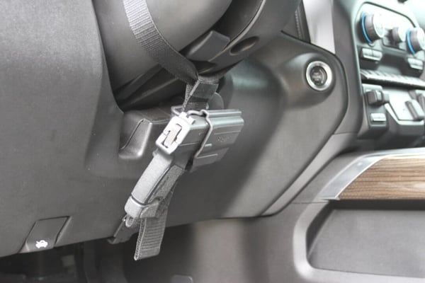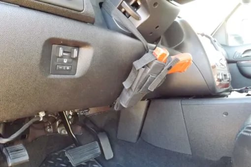 The Lethal Universal Pistol Mount works with all handguns and is great for mace and flashlights as well. You can attach any holster with a belt loop or clip and no tools required for installation. Attaches easily on your steering console to be easily accessible and ready!