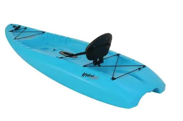 The Lifetime Hydros Angler Kayak is a sit-on-top kayak designed for extreme safety and stability. The kayak is constructed of blow-molded high-density polyethylene (HDPE) making it durable, UV-protected, and impact resistant. The lightweight, 41 pound design, front and rear T-handle, and convenient center carry handle make it easy to transport to and from the waterfront. With shock cord straps and multiple footrest positions this kayak has plenty of extras to enhance your fishing experience.